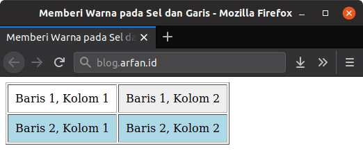 <td bgcolor="#efefef">Baris 1, Kolom 2</td>