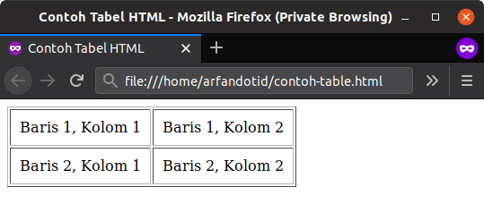 Contoh Penulisan Kode HTML untuk Membuat Tabel
